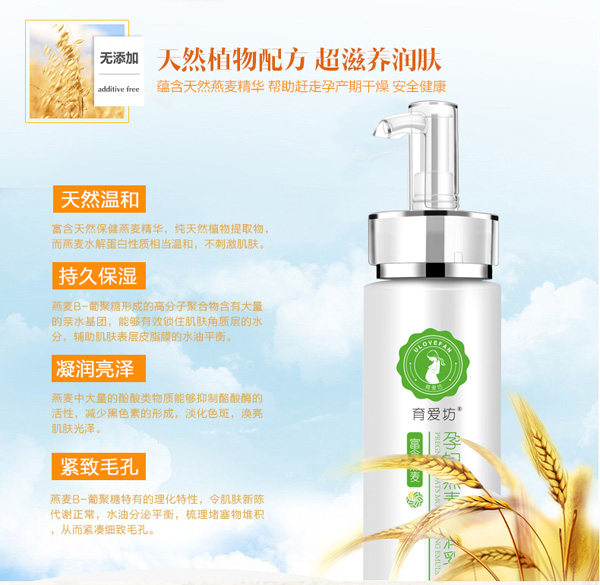 富含天然保健燕麥精華,天然植物提取物,而燕麥水解蛋白性質(zhì)相當溫和,不刺激肌膚。