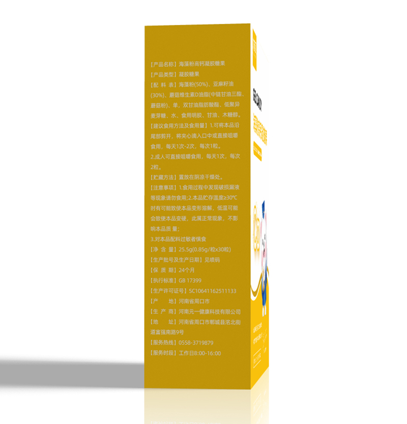 【配料 表】海藻粉(50%)、亞麻籽油(30%)、蘑菇維生素D油脂(中鏈甘油三酯、蘑菇粉)、單,雙甘油脂肪酸酯、低聚異麥芽糖、水、食用明膠、甘油、木糖醇。