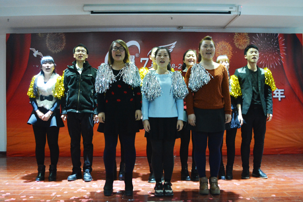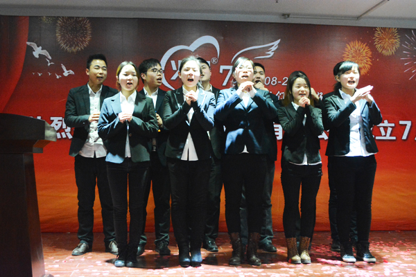 慶典現(xiàn)場,全體員工同唱司歌