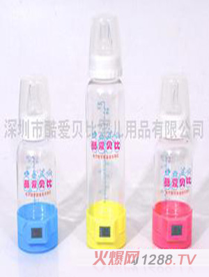 深圳市酷愛貝比嬰兒用品有限公司專業(yè)生產(chǎn)的新型電子數(shù)字顯溫、音樂、恒壓奶瓶,多功能三合一組合型奶瓶,采用最新技術(shù)設(shè)計,獨創(chuàng)的發(fā)明,并榮獲國家。電子數(shù)字顯溫、音樂部分在奶瓶底部,組成獨立一體的音樂盒,配備若干樂曲,供用戶選擇,并配有光控機構(gòu),當(dāng)嬰兒吸奶時,因底部光線射入,導(dǎo)致音樂片觸發(fā)發(fā)出聲音,給嬰兒產(chǎn)生新奇感,同時接受音樂啟蒙教育,一方面增進嬰兒食欲,同時也能有助于早期智力開發(fā)。電子數(shù)字溫度的精心設(shè)計同音樂部分組合一體,電子顯溫是針對傳統(tǒng)嬰兒喂食溫度用手背、用嘴試溫難以準確掌握適宜以及由此所帶細菌感染等缺點而設(shè)計,采用最新的溫度傳感技術(shù)開發(fā)生產(chǎn),給嬰兒食奶時可明確顯示瓶內(nèi)奶水的溫度,測量快速、準確、安全、放心,實實在在呵護bao--bao的健康成長。電子數(shù)字顯溫、音樂盒獨立性有可與市場上銷售任何一款直身奶瓶配套,直接吻合一體,即可構(gòu)成為一款新穎的多功能奶瓶之特點。(建議科學(xué)進食溫度為37℃-42℃)